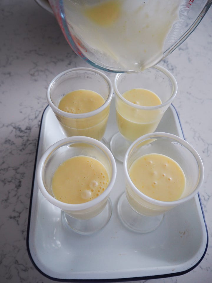 To the hot sweet cream add the lemon zest and lemon juice and whisk until combined. Then pour into glasses from a height, dividing the mixture into four. Allow to cool and then place in the fridge overnight.