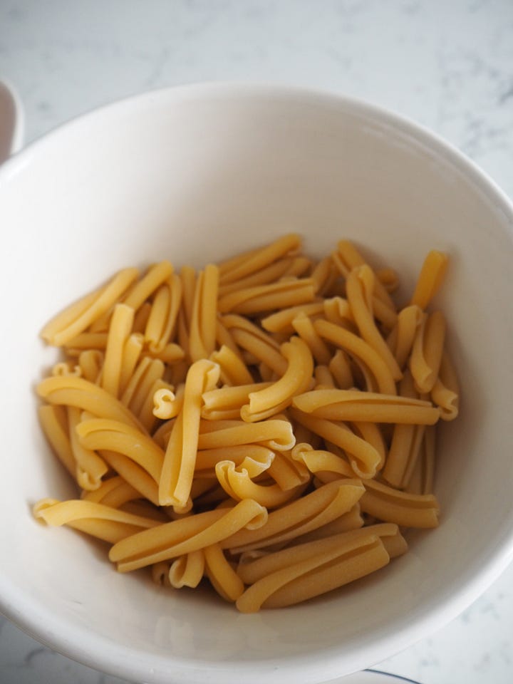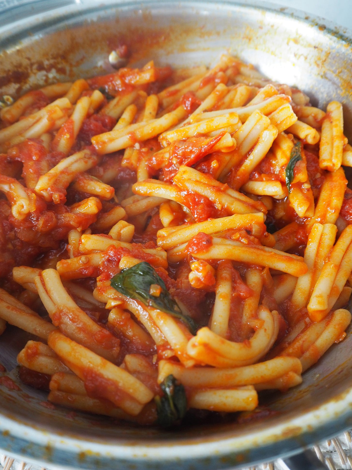 Returning to the master recipe itself, it requires a few kitchen cupboard ingredients making it incredibly useful to have saved for when a school bug hits. I used casarecce pasta as it was what I had to hand. A traditional pasta shape from Sicily: short, narrow with twisted tubes and rolled edges which hold the tomato sauce beautifully. Penne all’arrabbiata is a classic choice; equally good would be rigatoni, fusilli or rotini.