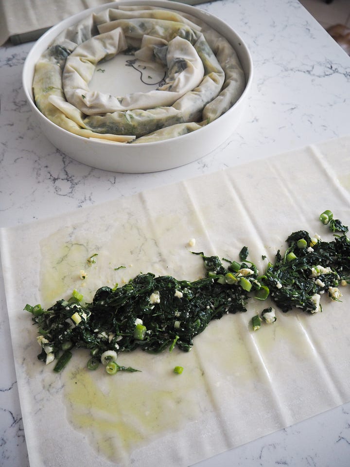 With the clocks changing this weekend and the days stretching a little longer, here is my version of a classic spinach and feta pie, serve warm with salad and some hard boiled eggs.